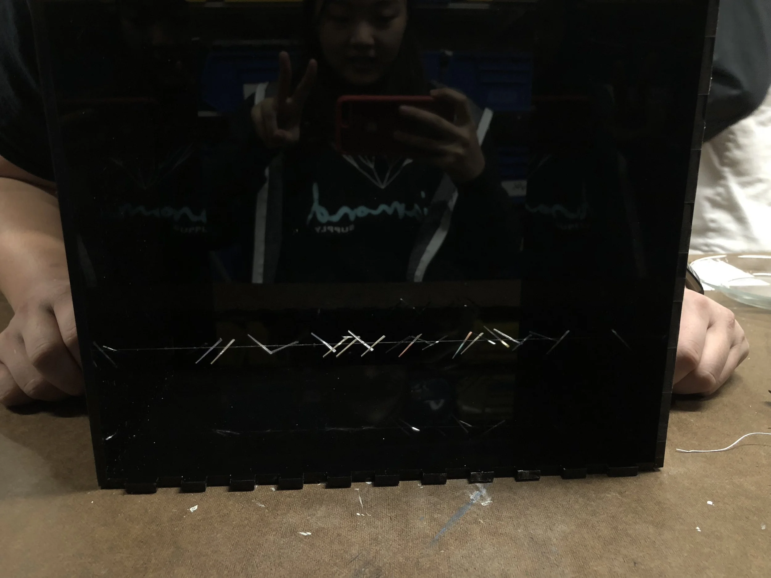 This video is showing how hard it is to put the string through the tiny hole in the acrylic.