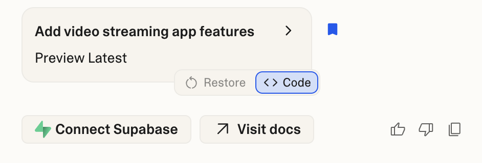 Easy view toggle for product vs. code using a “pendant” features built-in to the conversation.