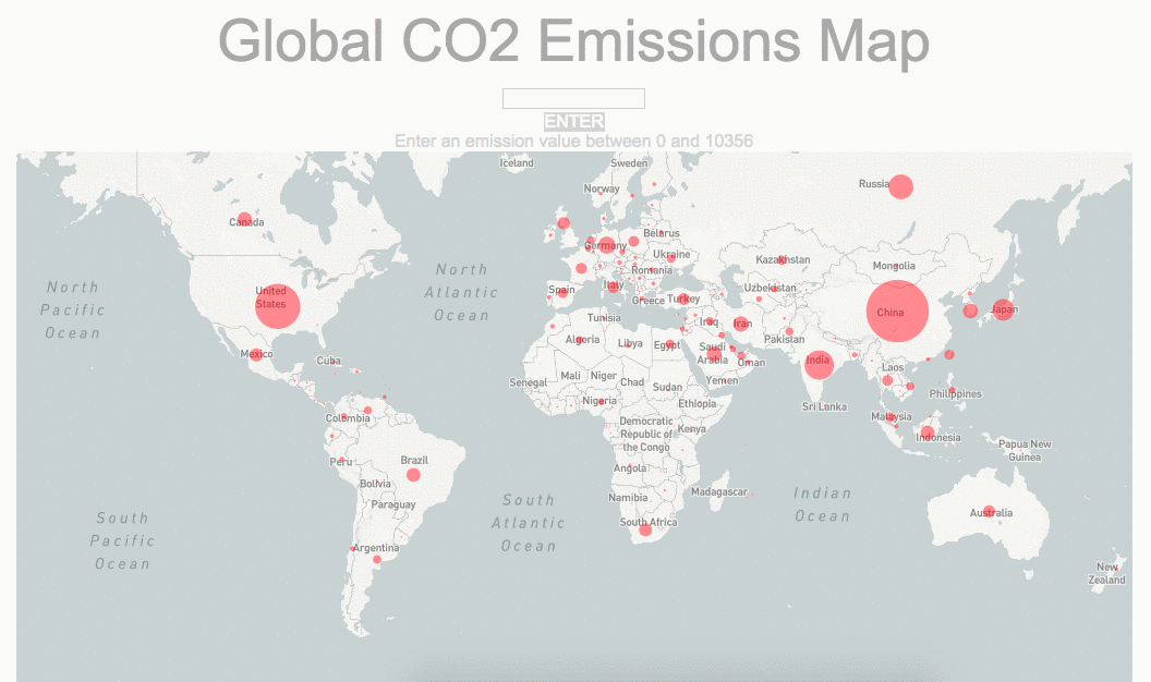 You can input an emission value and trigger the animation for all the nations that has an CO2 emission amount excess this value.